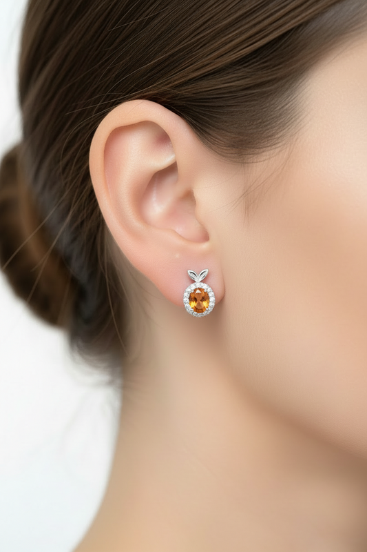 Natural Citrine Gemstone Mandarin Orange Demi Fine Ear Studs - Chinese New Year
