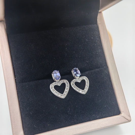 Natural Tanzanite Big Heart Demi Fine Ear Studs in S925 Silver