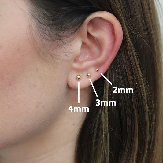 Solid 18K Gold Modern Plain Bead Earstuds 2mm 3mm 4mm
