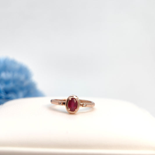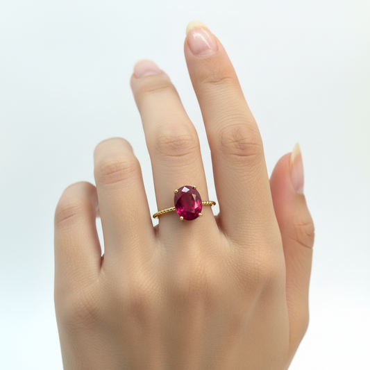 Red Ruby Oval Statement Ring in S925 Gold Vermeil