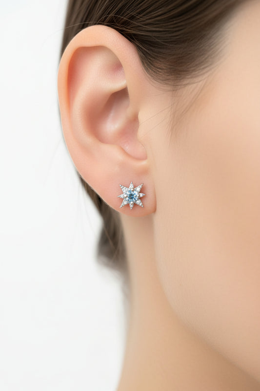Blue Topaz Northern Star Ear Studs in S925 Sterling Silver