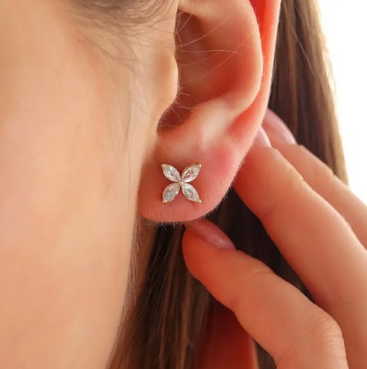 18K Gold Classic Marquise Flower Ear Studs in Natural Diamond / Lab Grown Diamond / White Moissanite